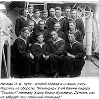 Имя на борту корабля "Иван Хурс"16 мая 2017 года на Северной верфи в Санкт-Петербурге спущен на воду срзк "Иван Хурс", предназначенный для Черноморского флота. Корабль назван именем замечательного человека, настоящего моряка и советского адмирала, начальника РУ ГШ ВМФ СССР. Боевой путь Иван Кузьмич Хурс начал утром 22 июня1941 г. курсантом второго курса Черноморского ВВМУ на борту учебного корабля "Днепр" в порту Одессы. Затем оборона Севастополя, Ростова-на Дону в составе курсантских формирований, а после расформирования ЧВВМУ 1.11.1941 г. в связи с убытием всех курсантов на фронт - боевые походы лидера "Ташкент, где мичман И.Хурс в течение нескольких месяцев воевал в составе экипажа, исполняя должность командира башни главного калибра. После выпуска уже из ВВМУ им. М.В.Фрунзе, в котором продолжался учебный процесс по сокращенным программам, лейтенант И.Хурс воевал под Сталинградом на судах Волжской военной флотилии помощником командира. С 1943 на Черном море командиром сторожевого катера. В 1945 вместе с экипажем был направлен на ТОФ для получения в США тральщика. Участвовал в войне с Японией, в боевом тралении. С 1946 г. - начальник штаба , командир с дивизиона тральщиков. С 1950 г. - служба Москве в разведке ВМФ.